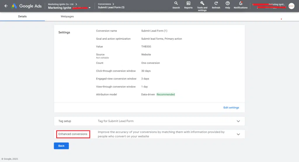 Please note: In the website backend once the user filled out the form, you need to pass the user name and email id in datalayer in order for the enhanced conversion tracking to work properly. At least one of the following fields must be provided: