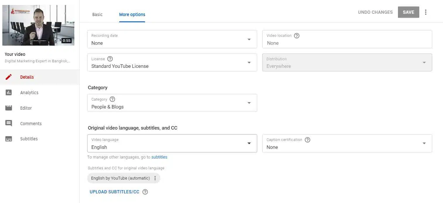 Be very sure that the primary language is whatever is being used in the video. This is extremely important because YouTube relies on this information to enable any of its transcribing and translating features.