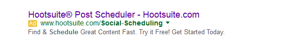 Hootsuite has a great landing page. Here’s their Google ad: