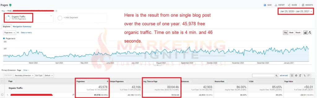 In addition, search engines care about the volume of content, uniqueness of content, and usefulness of content. It’s important that you present the right information in the right way. To help you achieve this, we’re staffed with a team of professional copywriters who create SEO-tailored content. You can trust Marketing Ignite to bolster your on-page, off-page, and technical SEO to maximize your odds of achieving that coveted #1 spot in search engine results.