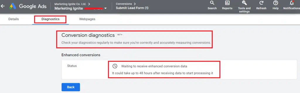 Please note: In the website backend once the user filled out the form, you need to pass the user name and email id in datalayer in order for the enhanced conversion tracking to work properly. At least one of the following fields must be provided: