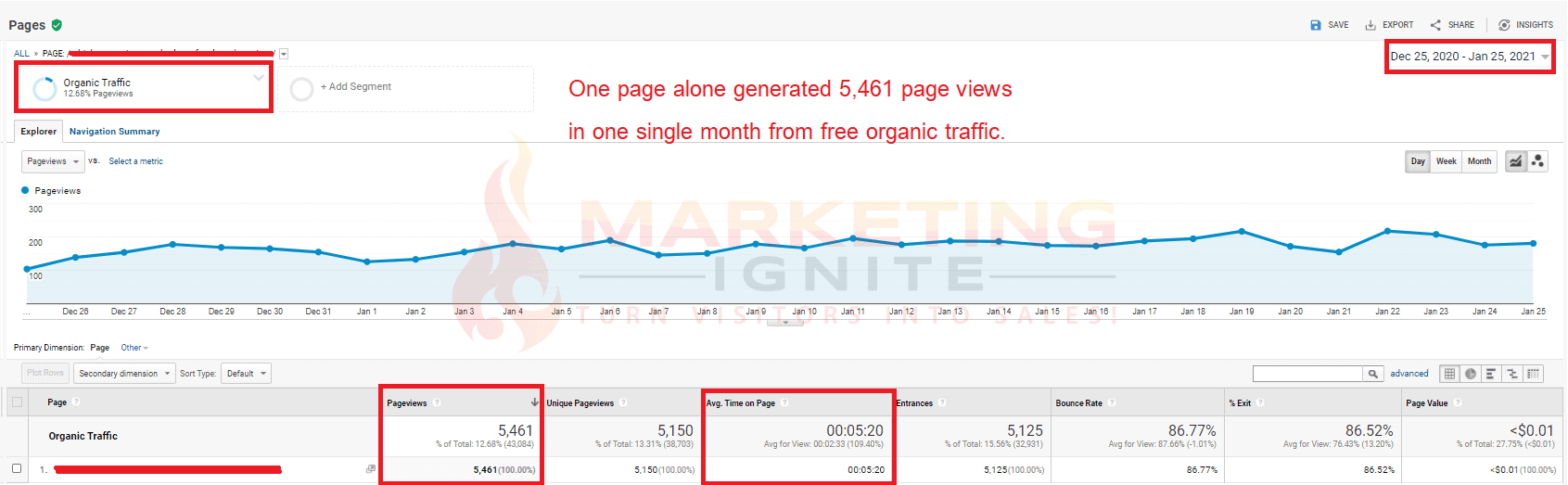 Here is an example of the results from one single blog post. This is FREE targeted traffic from Google that we have delivered for this client. With a solid SEO strategy for your blog, one single post can sometimes rank in the top for a number of related phrases. This is the reason why we are able to generate lots of organic traffic for our clients. How much would your business be impacted by thousands of targeted visitors to your website?